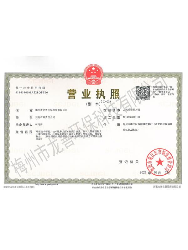 梅州市龍善環(huán)保科技有限公司為龍善環(huán)保股份有限公司(簡稱“龍善環(huán)保”)子公司。龍善環(huán)保于1995年12月成立,注冊資本為人民幣6,000萬元,總部位于深圳市南山區(qū)月亮灣大道2078號兆龍大樓16層。公司經(jīng)生態(tài)環(huán)境部、廣東省生態(tài)環(huán)境廳、深圳市生態(tài)環(huán)境局、深圳市交通運輸委員會、深圳海事局等部門許可專業(yè)從事陸地和海洋環(huán)境保護產(chǎn)業(yè)的高科技民營企業(yè),主要經(jīng)營業(yè)務(wù)包括工業(yè)廢物收運、資源化利用和無害化處理處置、海洋船舶污油水接收和集中處理處置、突發(fā)環(huán)境事故清污應(yīng)急處置等......